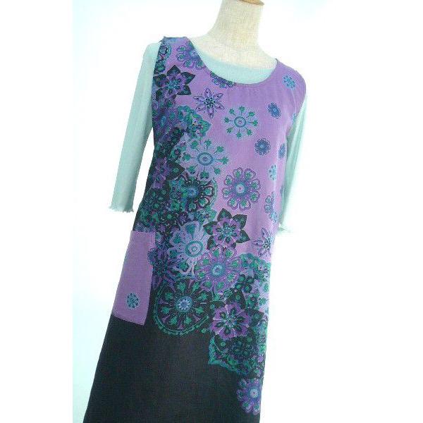 母の日に インド綿 個性的なデザイン エスニックな花 ミディアム丈エプロンドレス パープル Ap140501 唐花庵 通販 Yahoo ショッピング