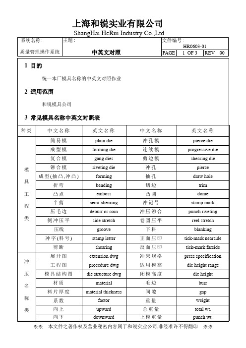 五金模具常用专业术语中英文对照表 Doc 十八文库